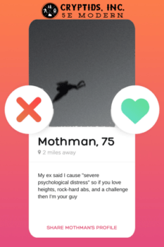 Jackson Lewis, the project’s coordinator, even supplied Geek Native with some imagined Tinder profiles for the cryptids – but I don’t think Cryptids Inc is that sort of game.