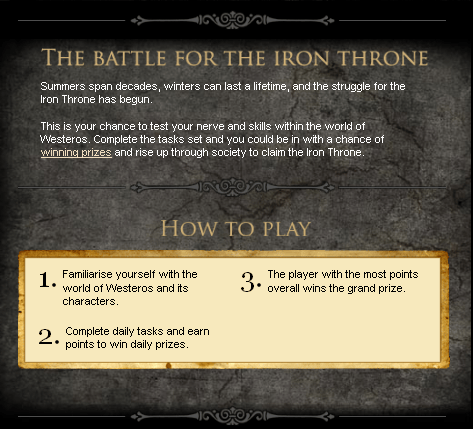 The extra news today is the partnership with paper.li. Game of Thrones have a lovely branded paper.li presence. I think they’re the first to have such a deal. You’re probably familiar with paper.li. It’s an easy way to build a newspaper style presentation of a whole bunch of interesting content surfaced by a group of Twitter users. Many sites use paper.li as an automated way to Tweet using people’s names to ping their Twitter account.