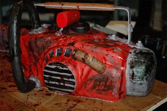 Isn’t this impressive? A bloody chainsaw and hand as a birthday cake! I can only imagine the fun the baker had. How much red dye went into this creation?