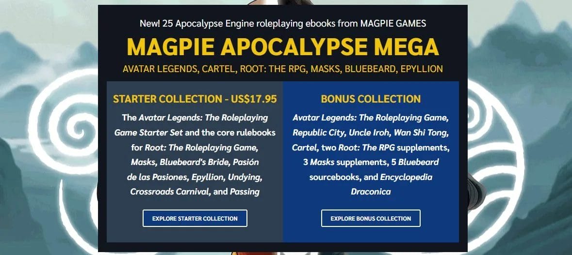 Magpie Games has opened a massive archive of its critically acclaimed catalogue on Bundle of Holding. The Magpie Apocalypse Megabundle collects 25 tabletop roleplaying games and supplements, all driven by the narrative-forward Powered by the Apocalypse engine. Running until Tuesday, 21 April, the offer spans an enormous variety of genres, from the record-breaking Avatar Legends to the brutal Mexican drug wars of Cartel.