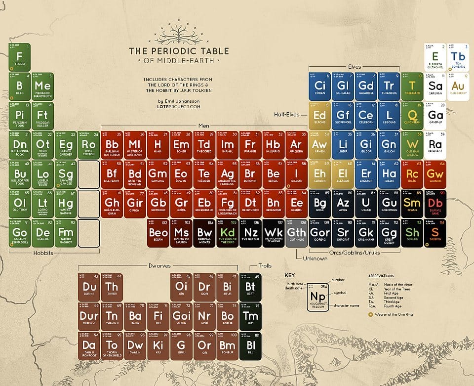 The Periodic Table of Middle Earth