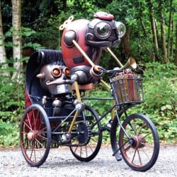 This Clockwork pedicab was created by the steampunk character artist Doktor A. The piece in question will feature in the Monsters & Misfits III show that’ll take place in Takayama, Japan, this September. Via The Geyser of Awesome.