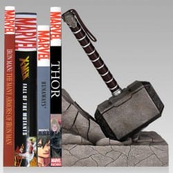 Got too many roleplaying games and comic books cluttering up the room? If only you could turn a mantelpiece or shelf into a suitable bookcase! You’ll need something to stop the books falling off the end. You’ll need something heroric. Something mighty. You’ll need Thor’s hammer! Thor’s hammer bookend is on pre-order from Urban Collector.