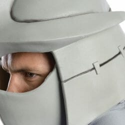 It’s the mask and helmet that Fun sells, a combination of moulded grey latex and one-size-fits-most.