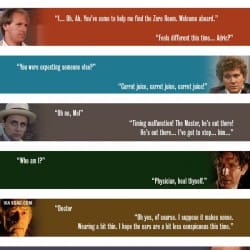 Do you remember the first thing the 9th Doctor said? “Run!” seems to sum up the series. Then there’s the 10th infamous; “I don’t want to go.” Cheezburger have put together an infographic of the Doctor’s first and last words for each generation. For the 12th generation? Yes; we’ve the first words – not the […]
