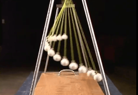 Here’s one for the physics geeks. For this to work you have to resist the urge to make a Newton’s Cradle. Instead you need your pendulum cut so the weights are on different lengths of cord. The next step is figuring out a way to set all the weights off at once. Turns out that […]
