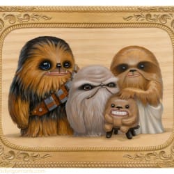 Created by Kristin Tercek, just in time for Star Wars Day, is this cute Wookiee family portrait. The official title of the work is Saga in the Stars: A Tribute to a Galaxy Far, Far Away and it was shown at the Gallery Nucleus exhibition. Via Geyser of Awesome.